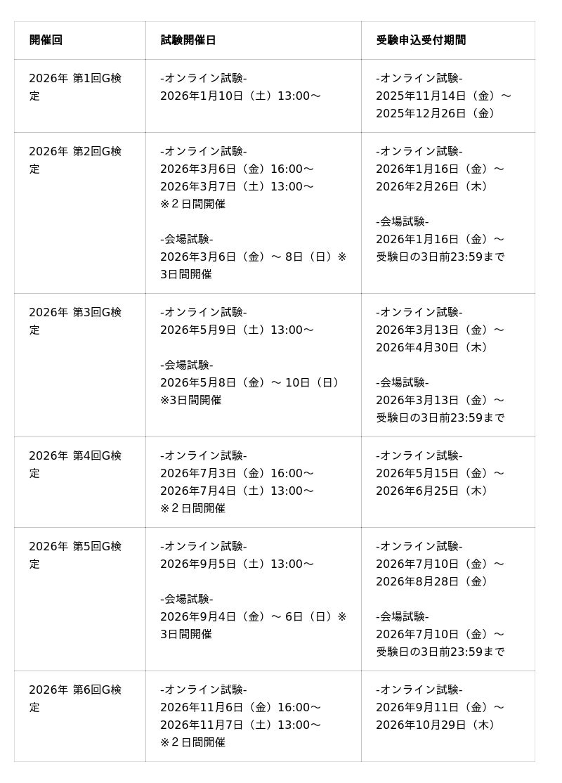 ・2026年 G検定年間開催スケジュール