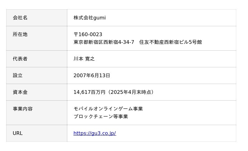 gumiは、「Wow the World! すべての人々に感動を」をMissionに掲げ、モバイルオンラインゲーム事業とブロックチェーン等事業の二つの事業を展開しています。モバイルオンラインゲーム事業では、『当社ゲームエンジン×IP』を軸とした収益性の高いタイトル開発を推進するとともに、開発受託にも注力しております。ブロックチェーン等事業では、ブロックチェーンゲーム等のコンテンツ開発、暗号資産を基盤にしたプラットフォーム構築、有力ブロックチェーンのノード運営、グローバルにおけるファンド投資等を行っております。