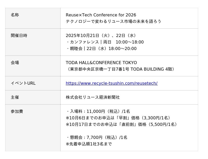 【10/21・22日開催】ショーケース、リユース業界最大級のイベント「Reuse×Tech Conference for 2026」に出展