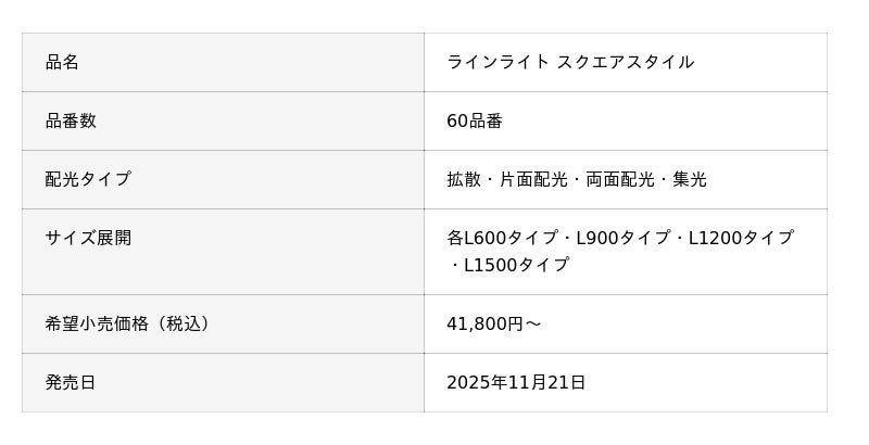 HomeArchi「ラインライト スクエアスタイル」を発売(2025年10月8日)