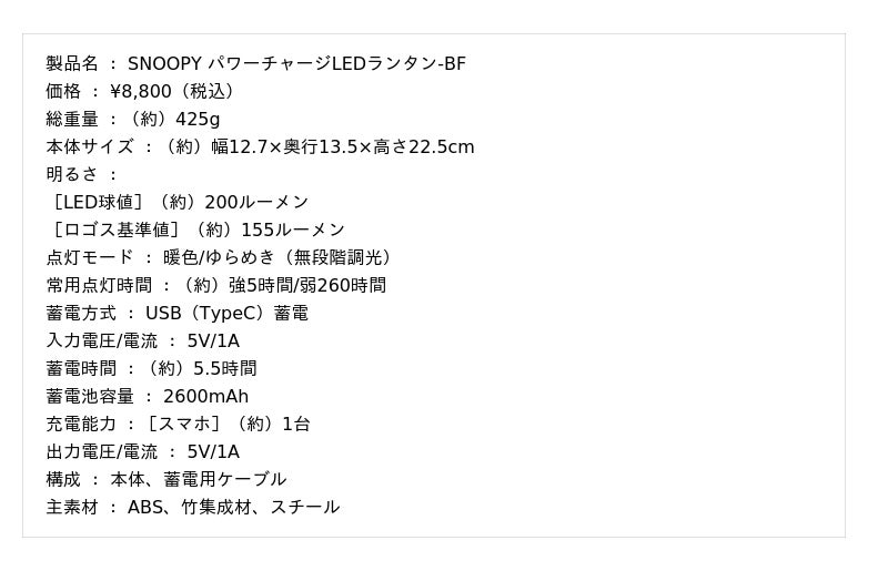 【 SNOOPY パワーチャージLEDランタン-BF 】