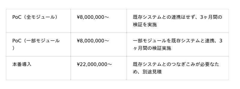 導入に向けたヒアリング等を実施の上、別途、御見積を提示します。