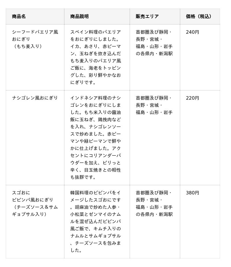 今後の販売を通じて、日常に取り入れることができる“非日常感”を味わい、手軽に購入出来る「コンビニのおにぎり」で、多くの人に海外旅行気分を楽しんでいただければ幸いです。