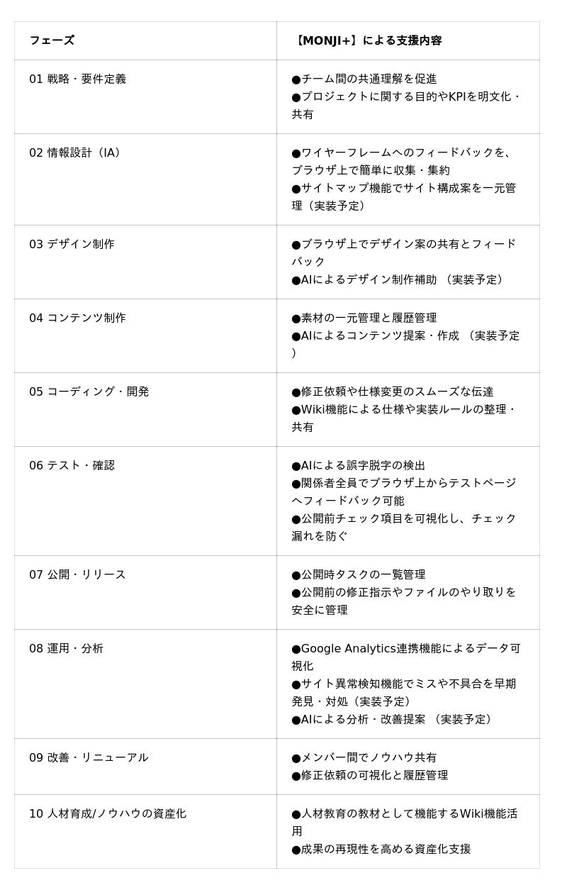 【MONJI+】は、この「分断」をなくし、すべてのフェーズを一気通貫で支援することで、