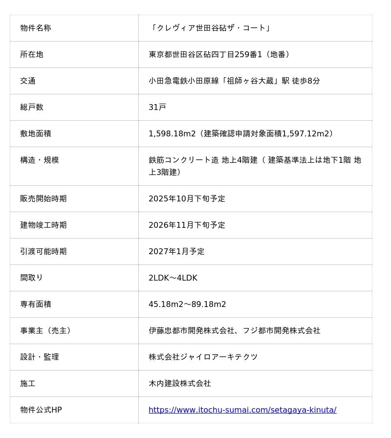 伊藤忠都市開発株式会社(本社:東京都港区、代表取締役社長:松 典男)とフジ都市開発株式会社(本社:静岡県静岡市、代表取締役社長:藤原 哲宏)は、2025年10月18日(土)より、ギャラリークレヴィア新宿にて、新築分譲マンション「クレヴィア世田谷砧ザ・コート」のコンセプトルームの一般案内を開始いたします。