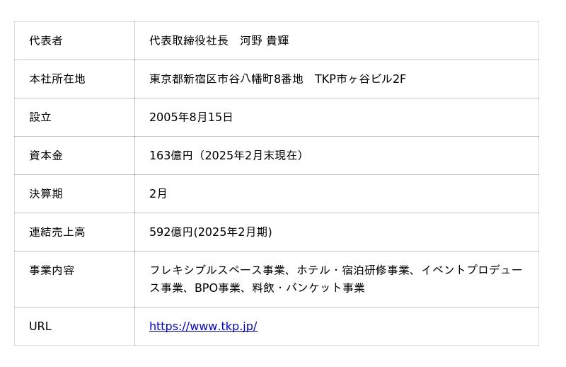 【株式会社ティーケーピー 会社概要】