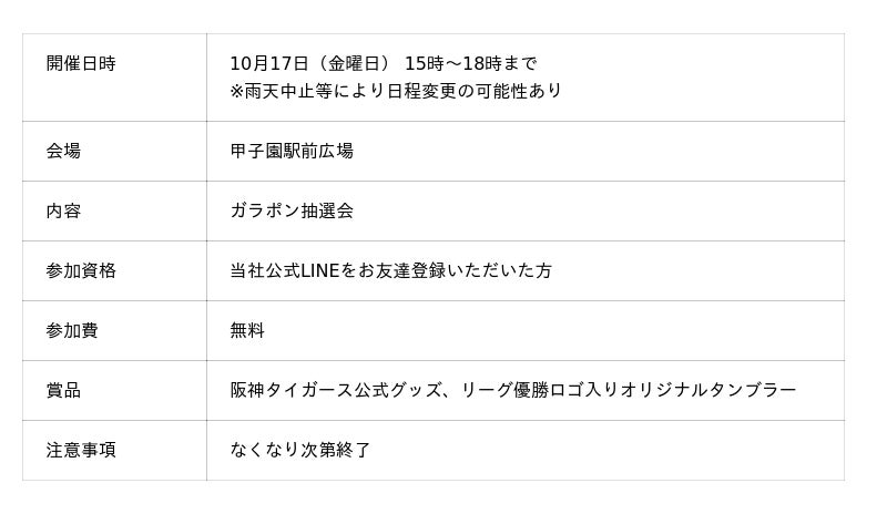 CS第三戦が開催される10月17日(金曜日)に、甲子園駅前広場にて特設ブースを出展いたします。