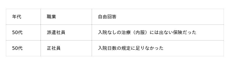・そのうち20%が「給付金を受け取れなかった」と回答。理由は「通院治療への保障がなかった」次いで「上皮内新生物の保障がなかった」