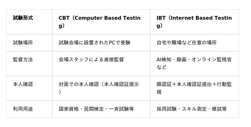 CBT方式は公平性と信頼性の高い方式として多くの国家資格試験でも採用されており、IBT方式は柔軟性・利便性を生かしたリモート試験として拡大が進んでいます。