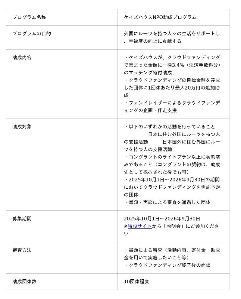 「ケイズハウスNPO助成プログラム」特設サイト: