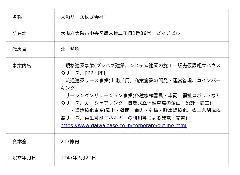 同じくビジネス・ソリューション本部に属する大和リースは、設計・施工の全プロセスをシステム化したシステム建築事業を中心に、土地活用の提案や商業施設の開発・運営、駐車場建設や自動車・農業・福祉分野のリース事業など幅広い事業を展開しています。