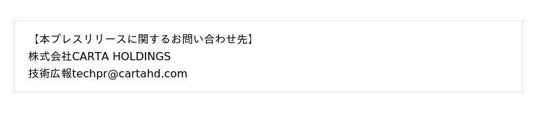株式会社CARTA HOLDINGS(東京都港区、代表取締役 社長執行役員:宇佐美 進典、東証プライム市場:証券コード3688)は、2025年10月11日(土)・12日(日)にオンラインおよび東京会場にて開催される国内最大規模の学生向けテックカンファレンス「技育祭2025【秋】」にプラチナスポンサーとして協賛します。本イベントでは、「AIに淘汰されない技術力とは?」をテーマに、当社執行役員CTOである鈴木健太、株式会社テレシーのデータサイエンスエンジニアである早坂琢真、株式会社DIGITALIOのソフトウェアエンジニアである光岡 宏海の3名が登壇します。また、現地ブースでは限定ノベルティが当たる企画も実施し、学生エンジニアとの交流を深めます。