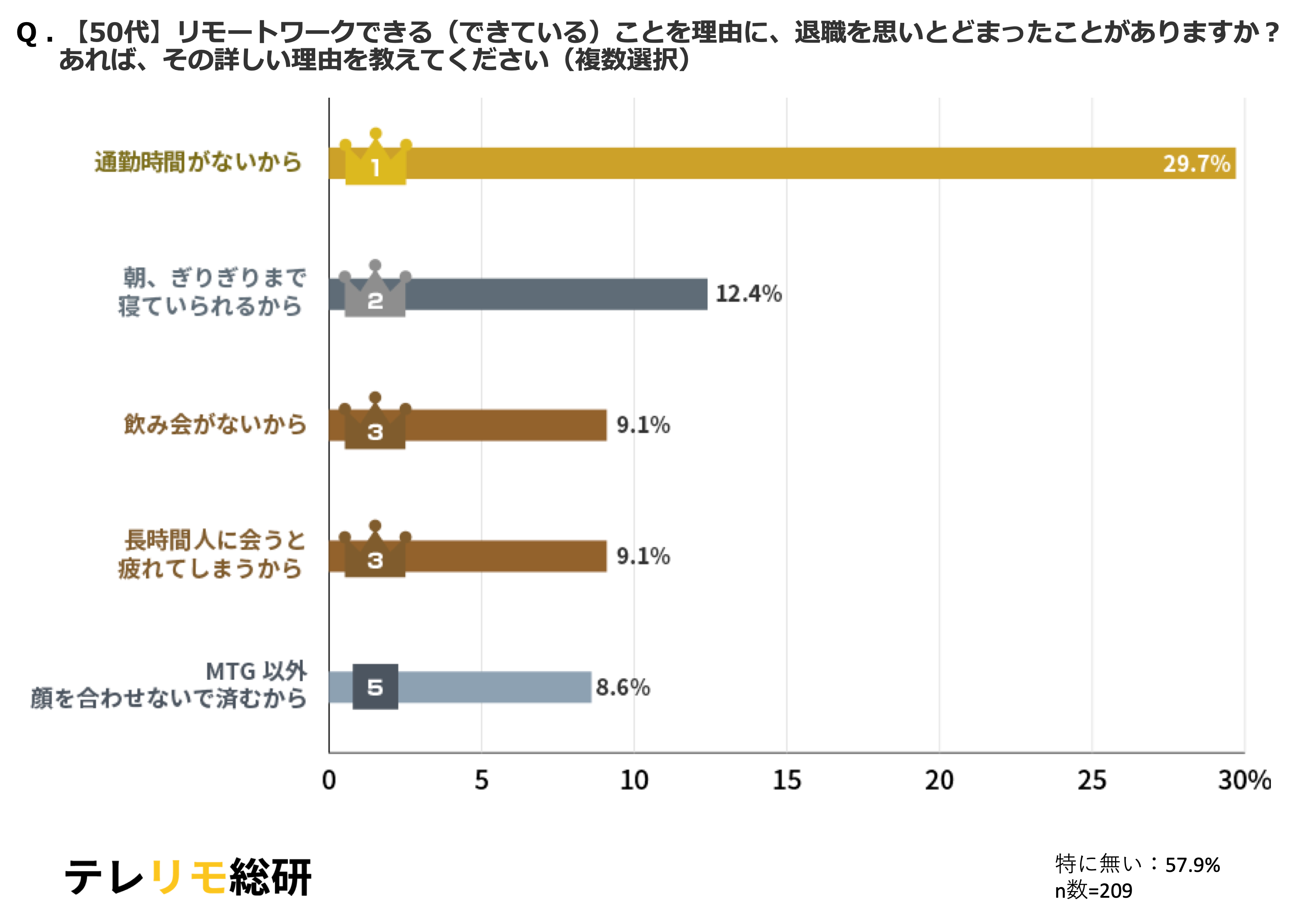 【50代】リモートワークできる(できている)ことを理由に、退職を思いとどまったことがありますか? あれば、その詳しい理由を教えてください(複数選択)結果グラフ