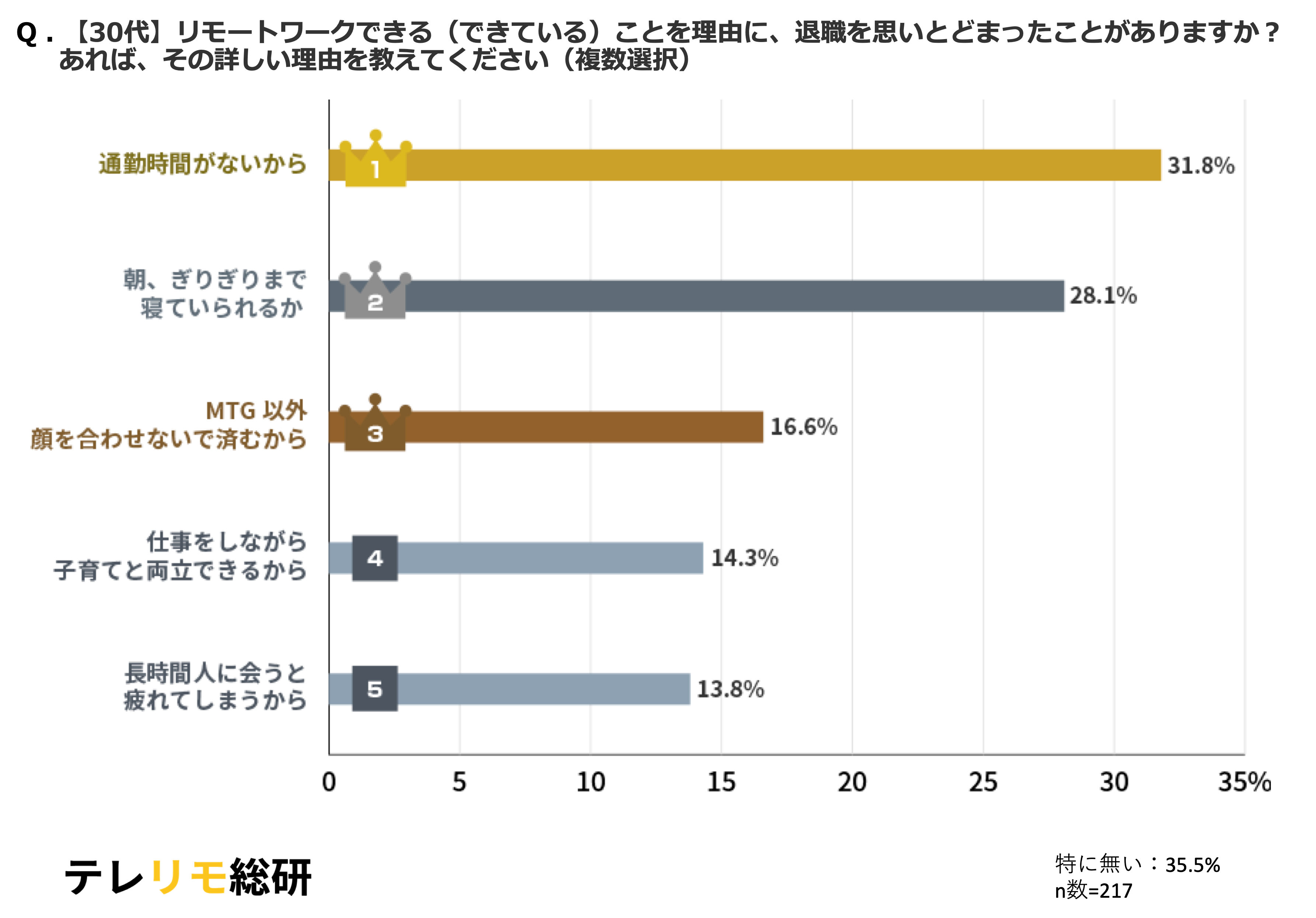 【30代】リモートワークできる(できている)ことを理由に、退職を思いとどまったことがありますか? あれば、その詳しい理由を教えてください(複数選択)結果グラフ