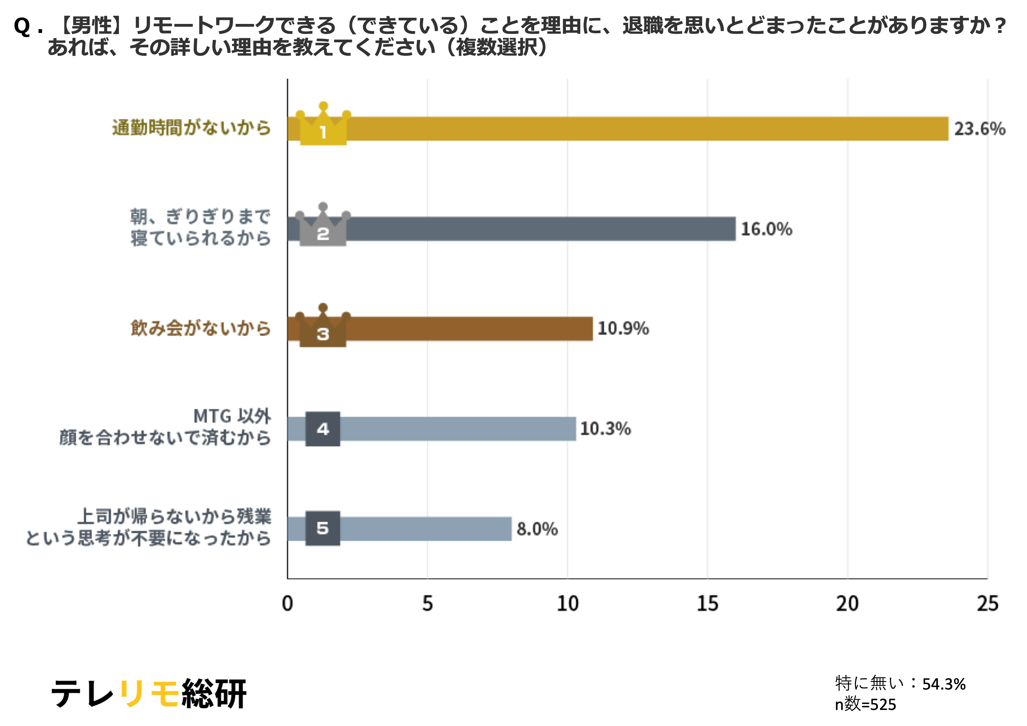 【男性】リモートワークできる(できている)ことを理由に、退職を思いとどまったことがありますか? あれば、その詳しい理由を教えてください(複数選択)結果グラフ