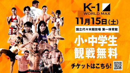K-1を主催する株式会社M-1スポーツメディア(本社:東京都渋谷区、代表取締役社長:大木 知葉)は、来る11月15日(土)に国立代々木競技場 第一体育館で開催される「K-1 WORLD MAX 2025」において、「小・中学生無料招待」企画を実施することを、10月13日「スポーツの日」の本日、全国の皆様にお知らせいたします。(