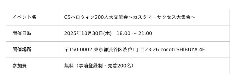 イベント「CSハロウィン200人大交流会~カスタマーサクセス大集合~」に協賛決定