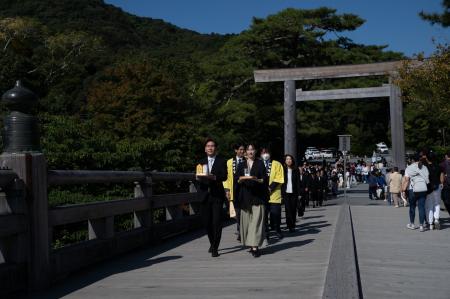 伊勢神宮の神嘗祭は、神嘗正月とも呼ばれ、伊勢神宮で執り行われるお祭りの中でもっとも重要とされる祭儀式です。宮中祭祀の大祭であり、その年の初穂を天照大御神(あまてらすおおみかみ)に奉納する儀式が行われます。地元はもちろん、全国からもたくさんの人が参加し、心を込めて奉曵、奉納しております。