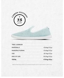 「Allbirds」では2020年4月より、全製品においてカーボンフットプリントを表示。製造過程における排出量ゼロを目指すと共に、食品のカロリー表示のように、「地球のためにCO2e排出量を知る」が当たり前の世の中をつくります。