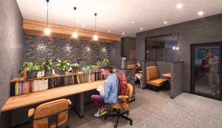 当施設の最大の特徴は、黒板や本棚を用いた交流スペースを設けたことです。子育てがひと段落し、自分の趣味を楽しみたい人や、仕事に励むテレワーカー、子育てと仕事を両立するため、通勤時間を削減したい人など、地元のさまざまな世代の人たちが、気軽に会話をしたり、アイデアを交換したりできる空間となります。従来のコワーキングスペースのように、仕事や自習利用としてはもちろん、地元の人たちの交流の場としても機能するコワーキングスペースを目指します。