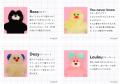 転写でいろんなぬいぐるみたちをプリントしたデザイン。裏はふわふわした素材になっています。mojojojoならではの柔らかくてポップな色感がポイント。おうちはもちろん、車やデスクワークにも大活躍です。