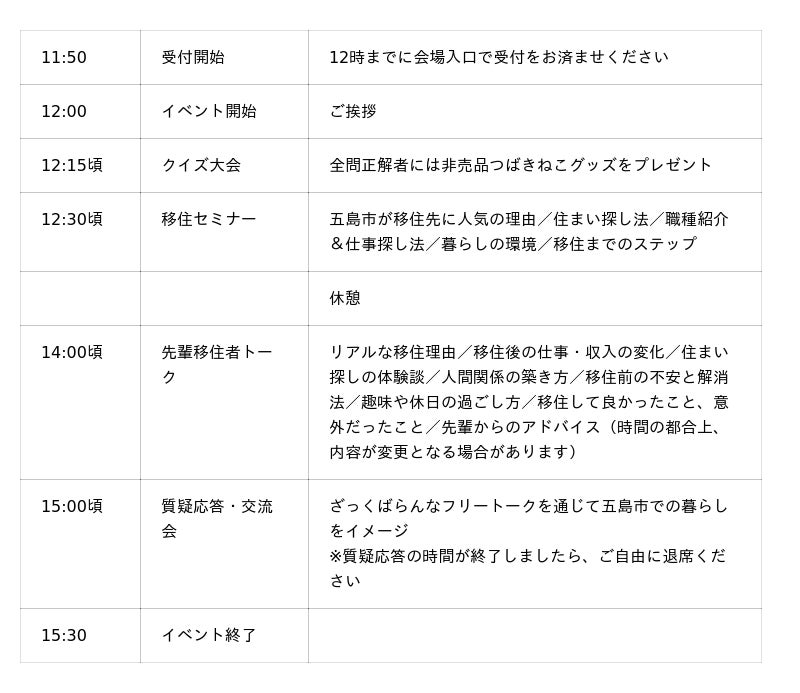 - 自然が豊かな場所や離島での生活に興味がある方- のんびりとした島暮らしの中で、家族との時間を大切にしたい方- 五島市が移住先に選ばれている理由が知りたい方- 「移住」という言葉に漠然と憧れている- 移住までに何をしたらいいかわからない方- 人との交流を大切にしたい方- 五島市への移住を検討している方