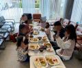 - メニュー:煮込みハンバーグ、ブロッコリーポタージュ、チョコレートケーキ(フルーツ添え)- 参加人数:子ども 11名、大人 6名、スタッフ 10名