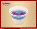 ミルクプリンの上に2色のブルーハワイ(パイナップル風味)のゼリーをトッピングし、海底に輝く光のコントラストを再現しました。
