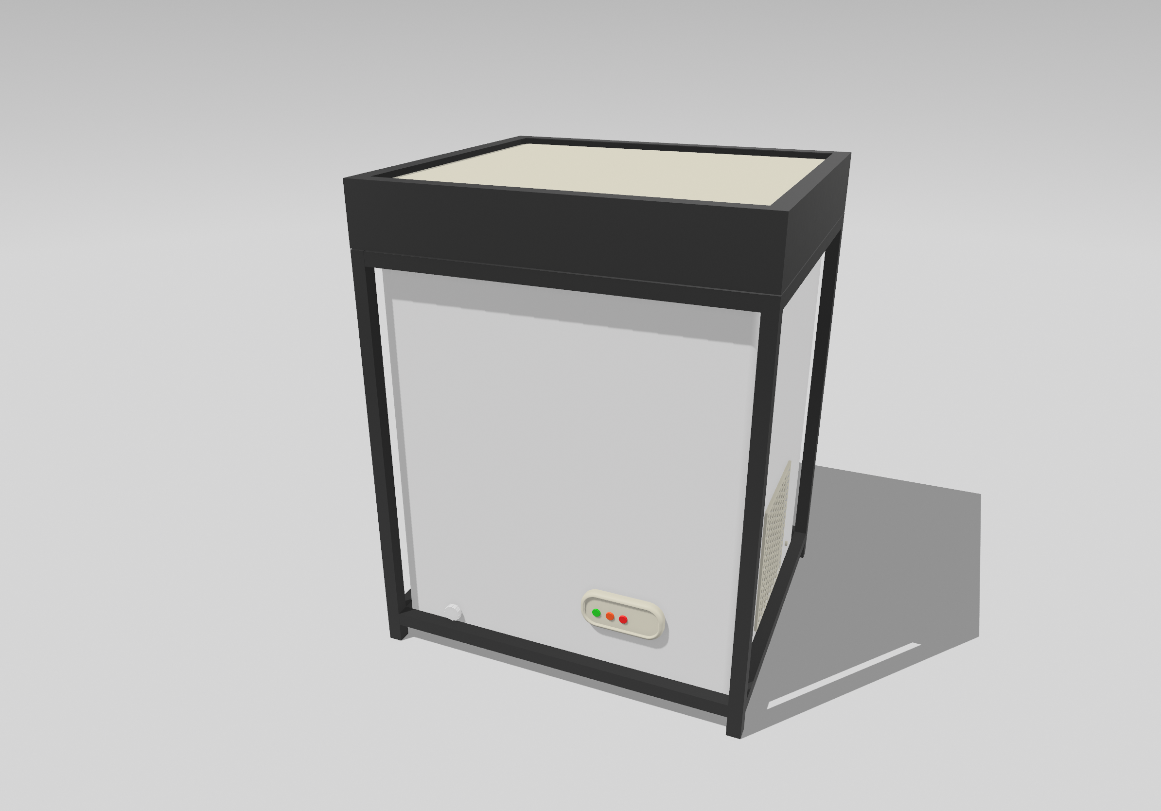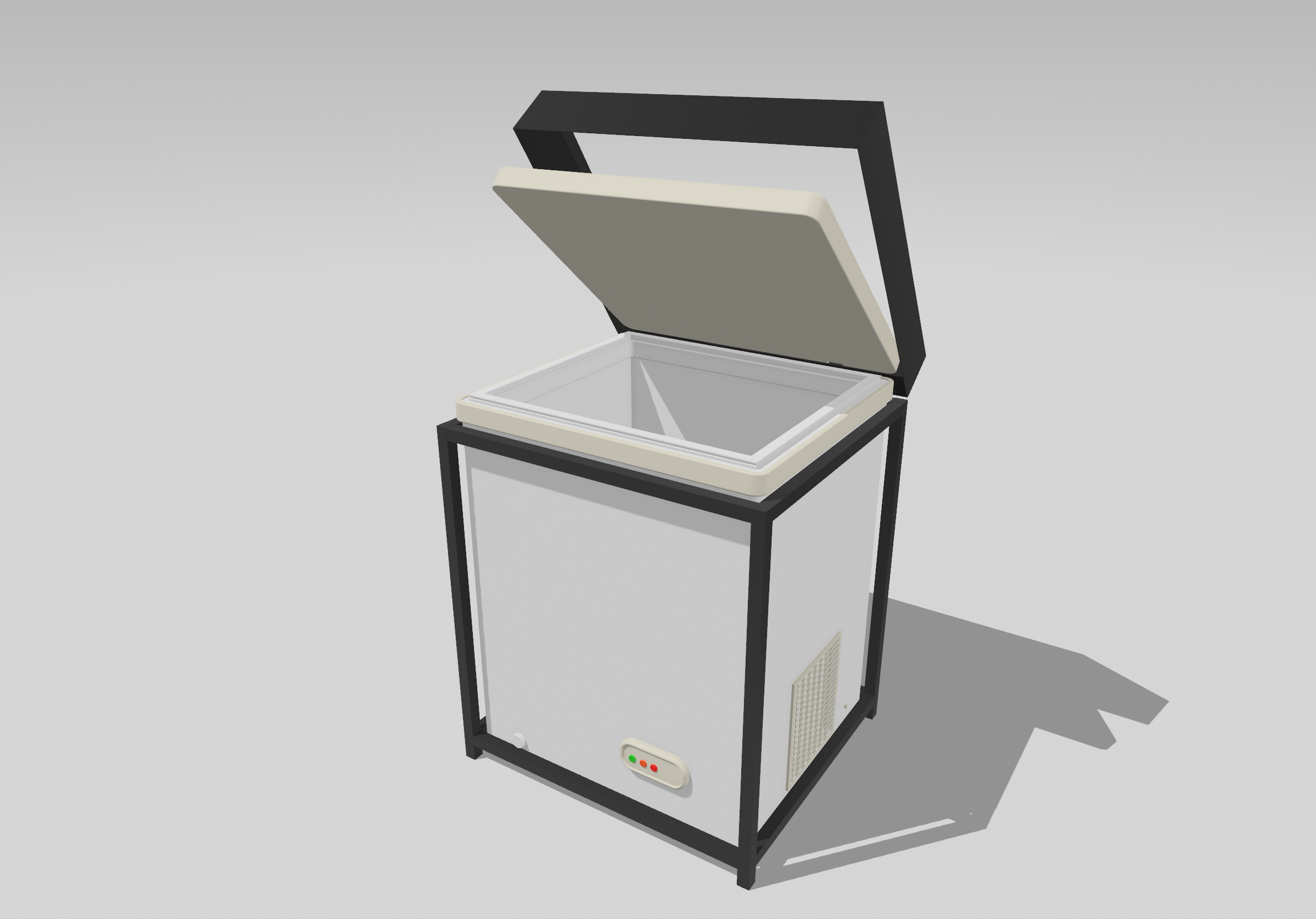 当社では、自社で冷凍庫を開発するのではなく、市販の冷凍庫をベースに、冷凍食品の宅配に最適化した専用カバーを組み合わせた一体型ユニットの開発構想を進めています。