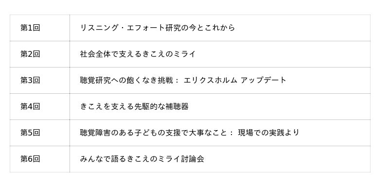 「きこえのミライ シーズン3」では、これまで、「シーズン1」「シーズン2」でお伝えしてきた「リスニング・エフォート」や「リスニング・ファティーグ」に悩まれている方をどう支援できるのかという、「聞こえの支援」に関する最新情報について、耳鼻科医師、教育者、研究者、補聴器メーカー、小児オーディオロジストなどの多彩な専門家が、それぞれの立場からの聞こえの支援に関わる最新情報をご紹介します。 また、全員が一堂に会する討論会も配信します。