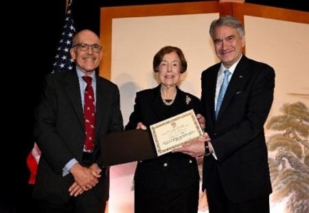 今般の受賞は、日米間の結びつきの進化に大きな役割を果たしたアフラック生命保険株式会社でのリーダーシップに加え、モーリーン・アンド・マイク・マンスフィールド財団理事長、米日経済協議会会長、在日米国商工会議所会頭、そして現在同氏が委員長を務める日米友好基金などの団体に対する長年の貢献などが評価されたものです。