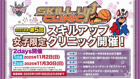 この度、琉球ゴールデンキングスアカデミーでは「女子限定スキルアップクリニック」11月2日(日)と30日(日)の2日間に渡り、開催いたします。