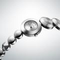 時計本体と12時側の大きな丸いこまを同じような大きさと形状に設計し、一体感を表現することで、ファッションアイテムのような軽やかさを実現。また、サイズの異なるこまを12時側と6時側で使い分けたアシンメトリーなブレスレットは、様々な価値観を内包する今の時代にふさわしい新しいスタイルを目指しました。着用した人の最も目に入りやすい、6時側から3つ目のこまだけに施された、きらりと輝く多面カットは、着ける人たちの心が高揚するような、ブレスレットらしい遊び心のあるワンポイントとしてあしらっています。