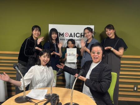パーソナリティの永見隆幸氏(前列右)とアシスタントの若林希(前列左)メリー・アーティスツ・カンパニーの皆さん(後列)