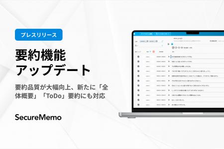 従来、「SecureMemo」ではAIによる自動文字起こしと、トピック別・決定事項の要約機能を提供していましたが、今回のアップデートにより、会議内容の全体像を俯瞰できる「全体概要」、および実務アクションを明確にする「ToDo」要約が追加されました。これにより、より実践的で活用度の高い議事録生成が可能となります。