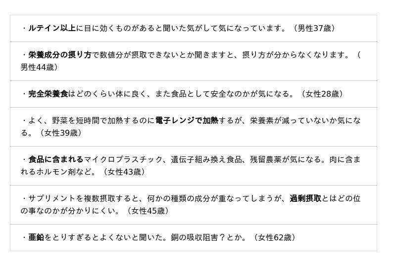 栄養成分を摂取している状況や意向などについて聞いています。調査結果をお知らせいたします。