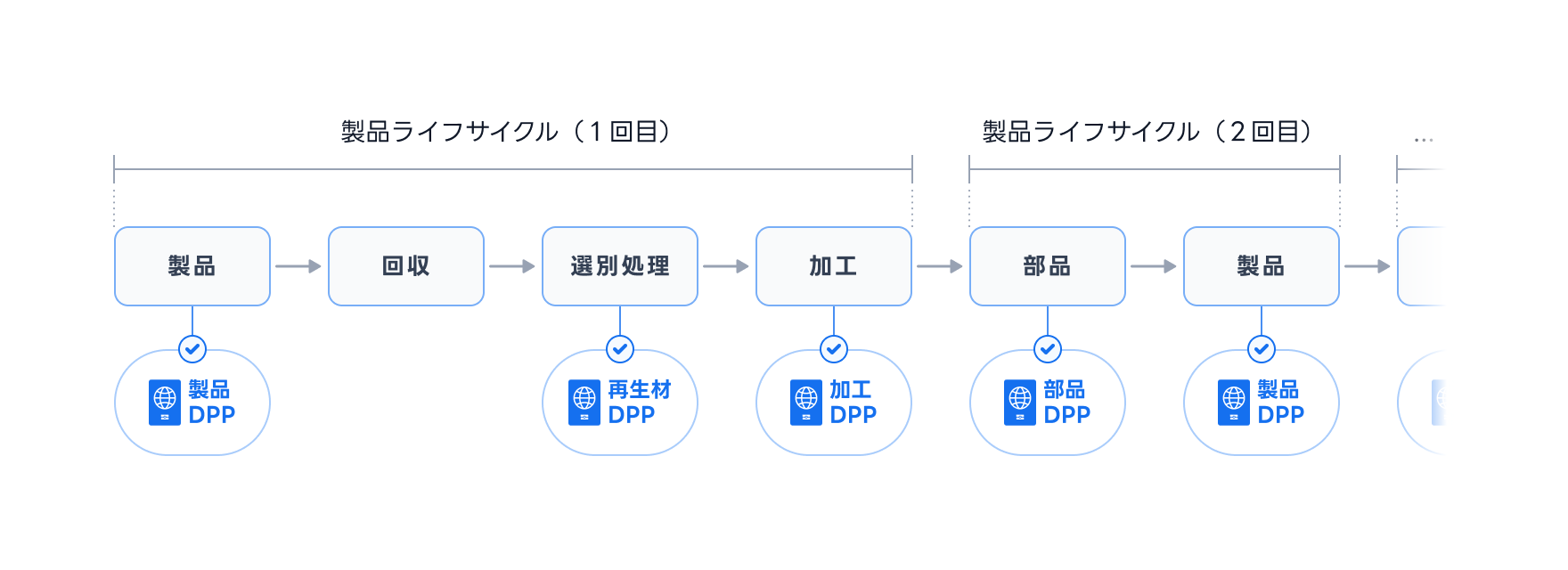 DPPとは、製品に関するあらゆる情報をデジタルデータとして一元管理・共有できる仕組みです。製品ごとに個別IDを割り当て、2次元バーコードやNFCタグで情報にアクセスできるようにすることで、ライフサイクル全体を可視化します。