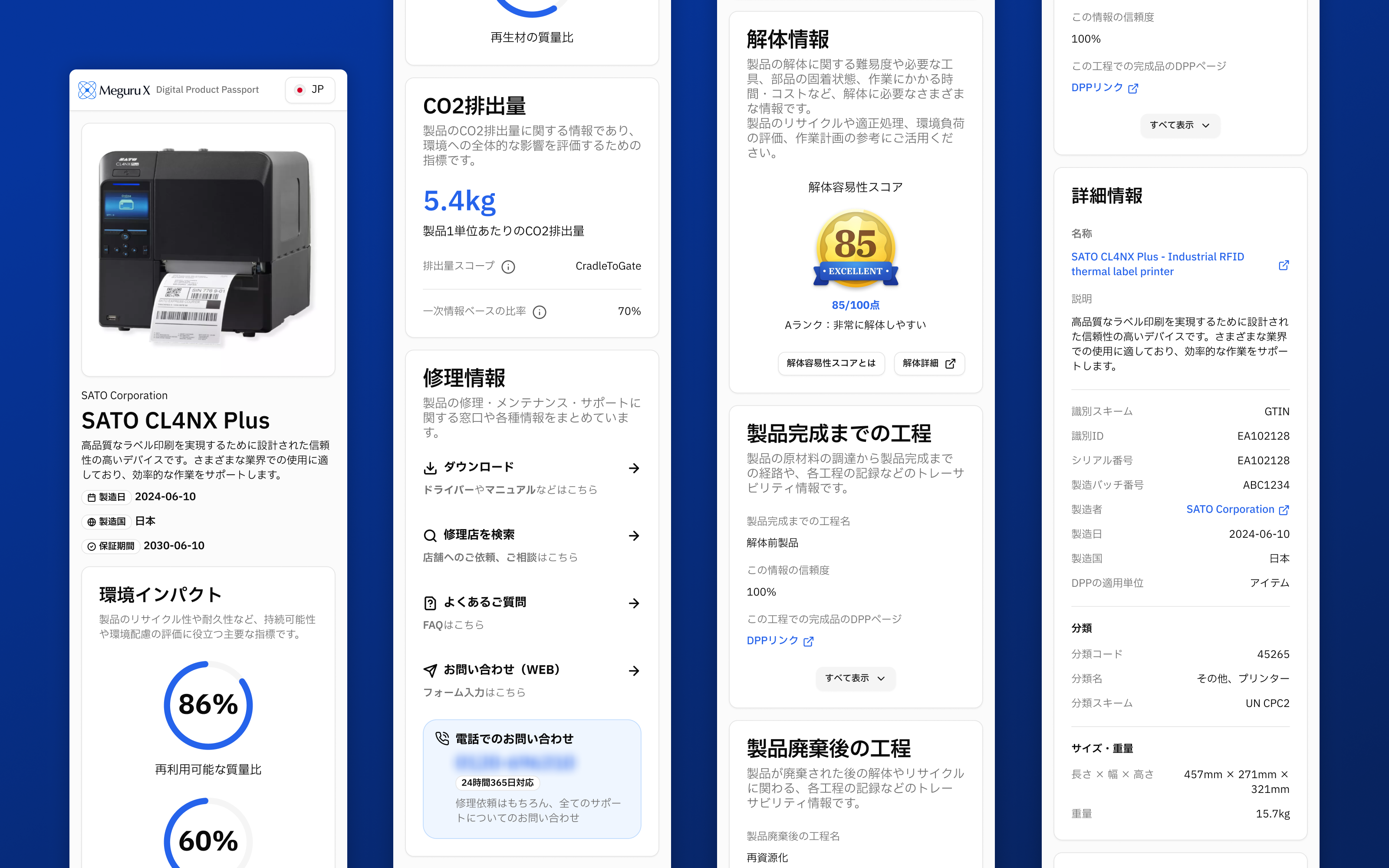 本実証では、サトー製ラベルプリンターを対象に、ナカダイによる回収・再資源化から、サトーによる再生素材ハンドラベラー製造までのプロセスにDPPを適用します。 RadarLabのDPPaaS上で各工程データを連携・管理し、製造・使用・解体・再資源化・再製品化に至るライフサイクル全体の可視化を図ります。