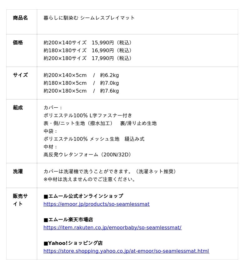 エムールは寝具ブランドとしての知識を活かし「隙間ゼロ×寝具品質」 で安全で心地よいプレイマットを実現しました。