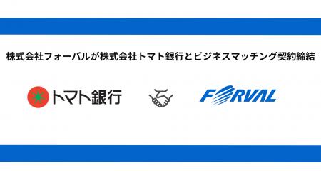 『「新しいあたりまえ」で、新しい世界を創るFORVAL』を理念に掲げ、ESG経営を可視化伴走型で支援する「企業ドクター(次世代経営コンサルタント)集団」の株式会社フォーバル(本社:東京都渋谷区、代表取締役社長:中島 將典、以下「フォーバル」)は、株式会社トマト銀行(本店:岡山県岡山市、取締役社長:高木 晶悟)とビジネスマッチング契約を締結いたしました。