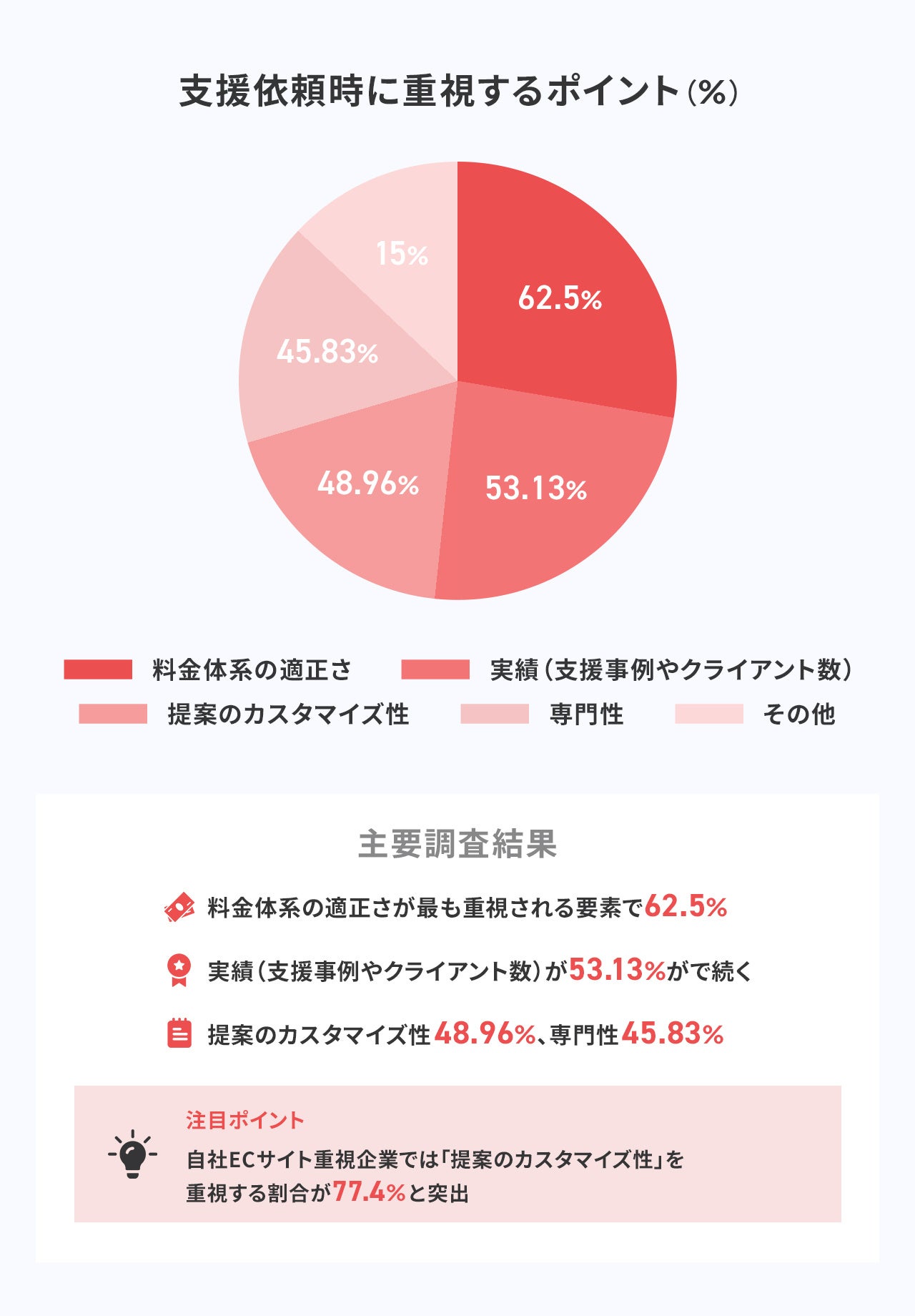 コンサルティング会社への支援依頼時に最も重視されるのは「料金体系の適正さ」で62.5%でした。