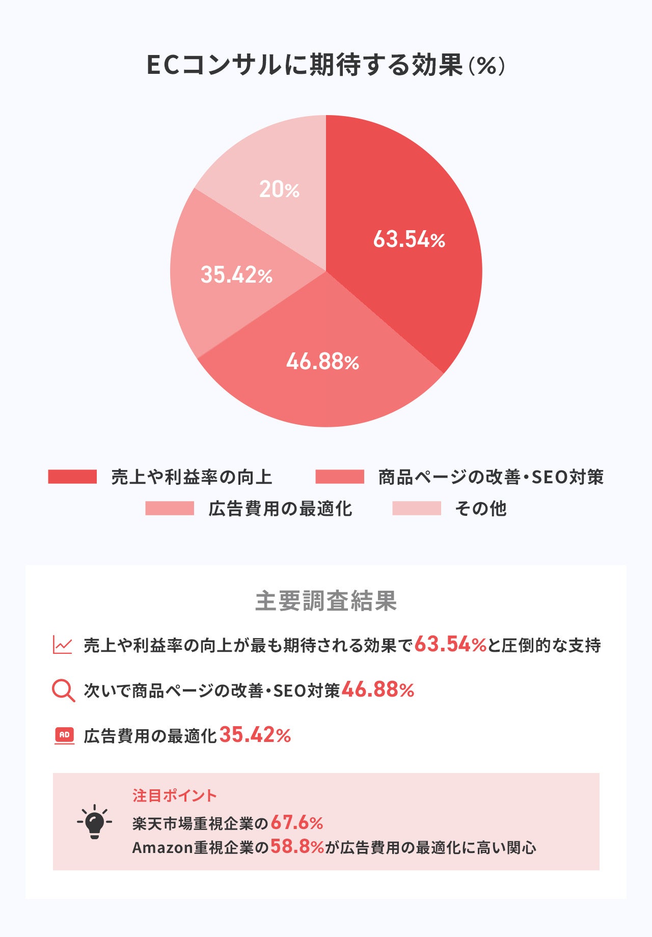 本調査により、ECコンサルティングサービスに対する企業のニーズは運営プラットフォームによって大きく異なることが明らかになりました。