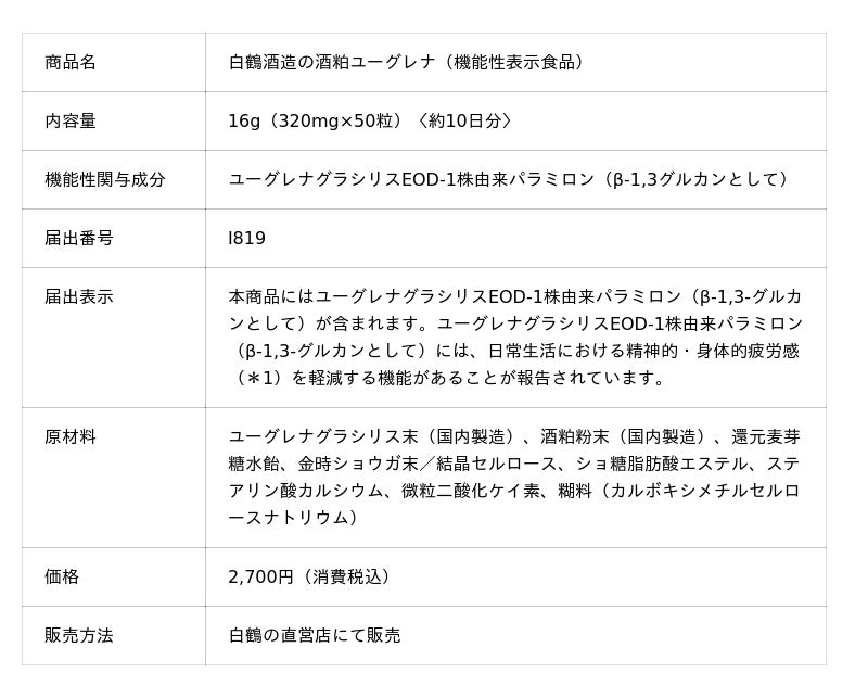 ■機能性表示食品「白鶴酒造の酒粕ユーグレナ」