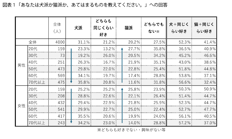 - 犬派か猫派か、年齢により差があるもよう