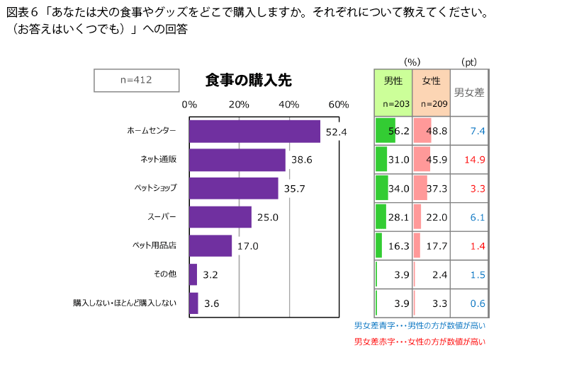 家族でペットを飼っている場合、ネットで注文する担当は女性、実店舗で購入するのは男性、というように、役割分担をしているのかもしれません。