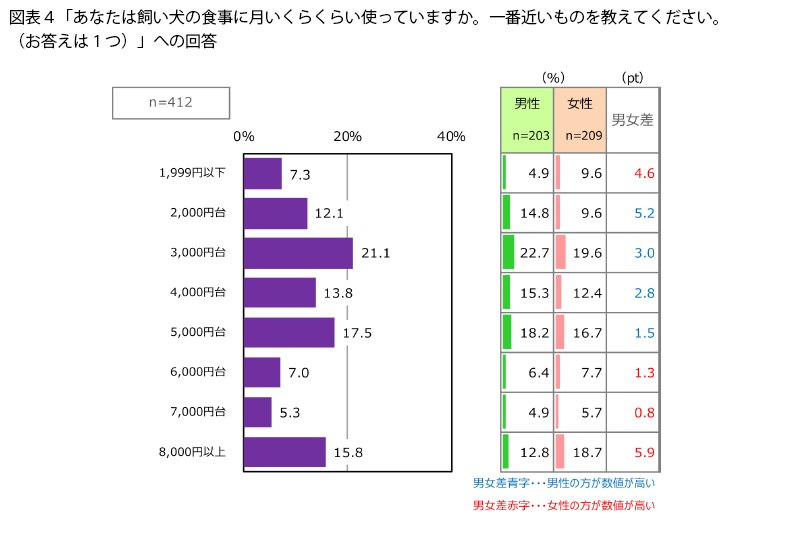 - 飼い犬の食費、5,000円台以下が約7割
