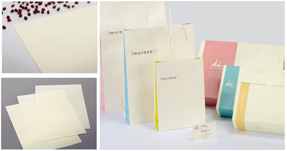 そのあずきの皮と紙パルプを混ぜた井村屋オリジナルの混抄紙で紙袋や封筒、名刺、化粧箱などを