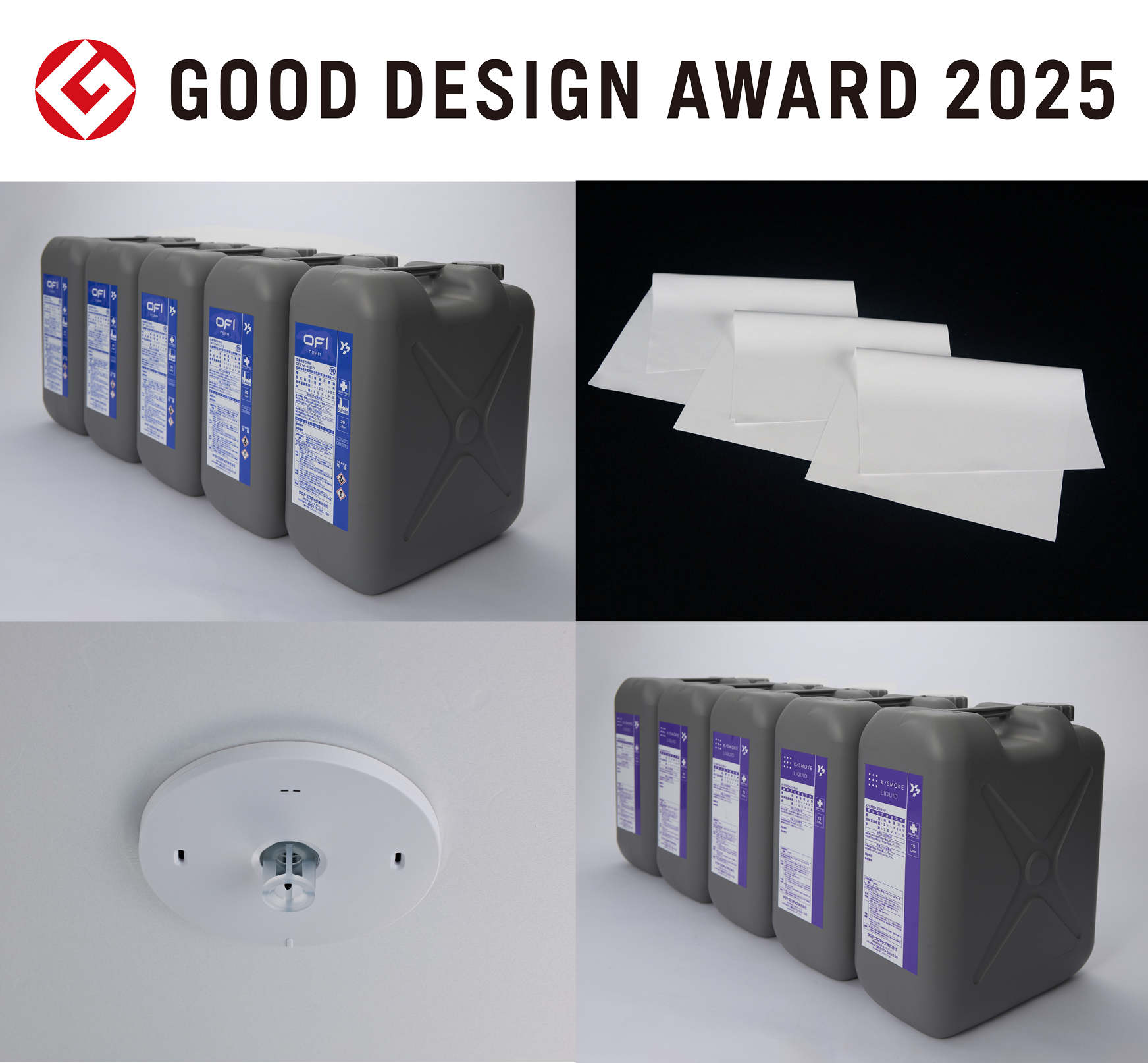 総合防災カンパニーのヤマトプロテック株式会社(本社:東京都港区白金台五丁目17番2号 代表取締役社長COO:大幸 斉)は、「OF1 FOAM」「OF1 LIQUID」「K/SMOKE PANEL」「K/SMOKE LIQUID」「サーミスタ式熱感知器」の5製品において、「2025年度グッドデザイン賞(主催:公益財団法人日本デザイン振興会)」を受賞しました。
