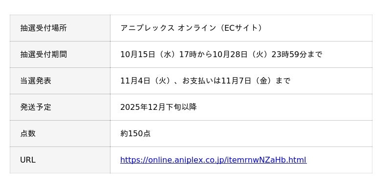 第一次抽選 アニプレックス オンライン