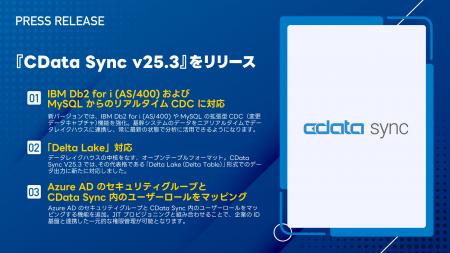 2025年10月15日、リアルタイムデータ連携コネクタを提供するCData Software Japan 合同会社(本社:アメリカノースカロライナ州、日本オフィス:宮城県仙台市、代表社員 職務執行者:疋田 圭介、以下CData)は、400種類以上のSaaS・DB データをノーコードでETL / ELT 可能な『CData Sync』の新バージョン、V25.3をリリースしました。